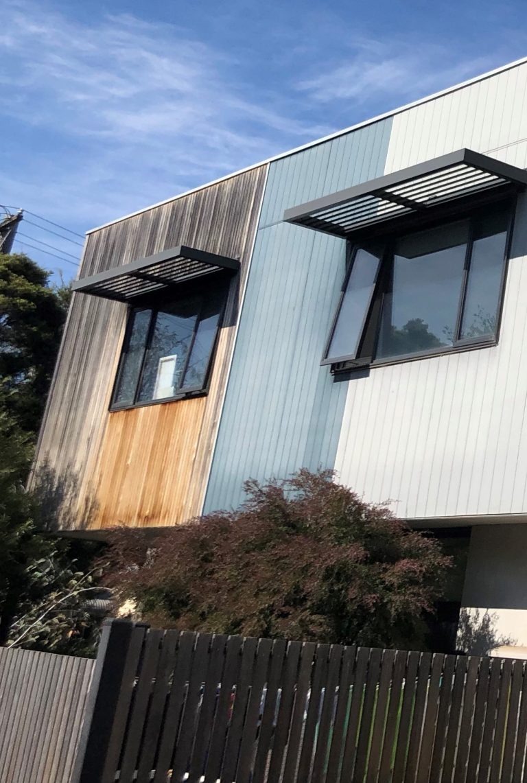 Obstructions such as eaves, gutters, flashings and window shrouds can all have an effect on how water and weather effects the weather process and should be thought about in the design stage. (see photo ——————>)
